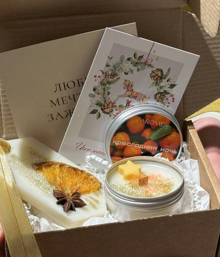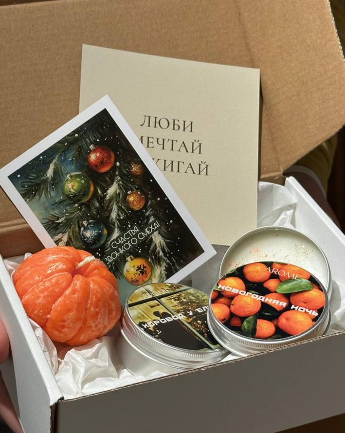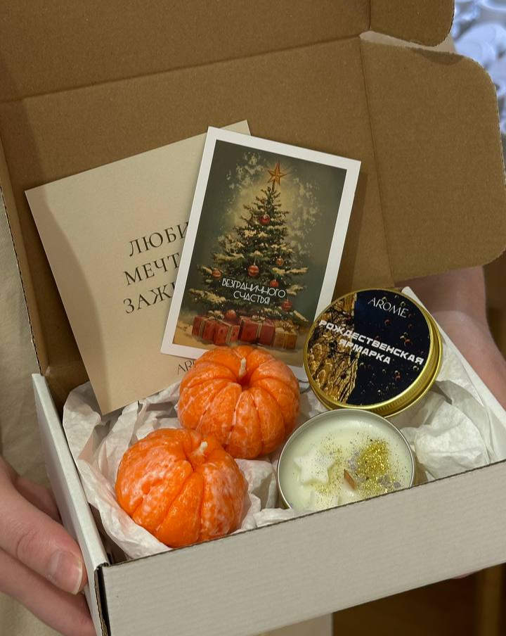 состав набора 2 свечи мандаринки свеча 120мл с новогодним ароматом открытка