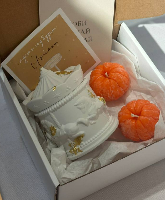 состав набора 2 свечи мандаринки свеча Карусель открытка