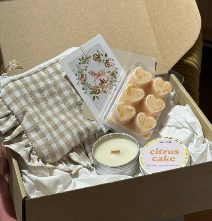 состав набора свеча мандаринка 2 свечи малышки с ароматом на выбор открытка