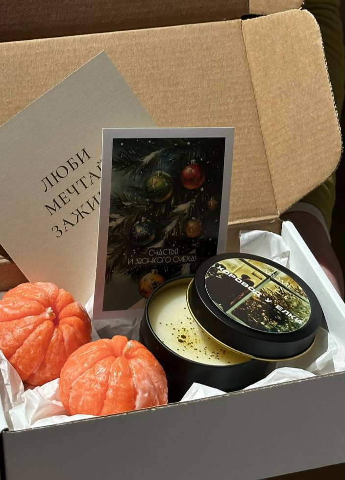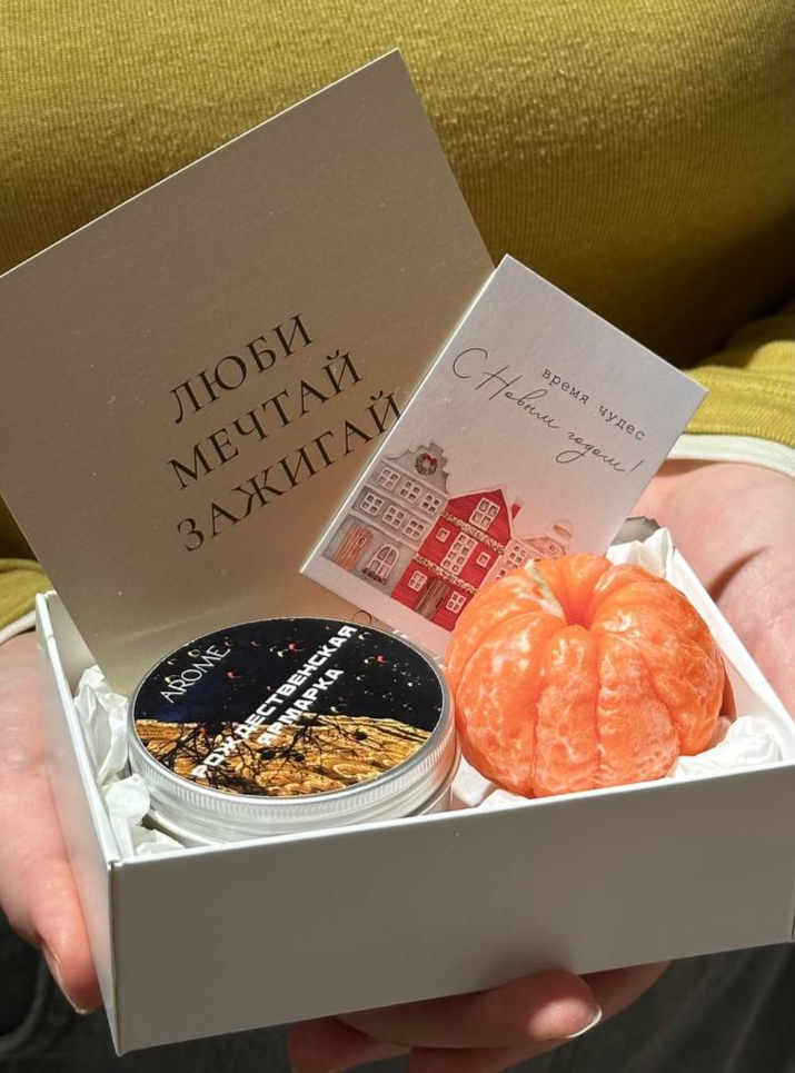 состав набора 2 свечи мандаринки свеча малышка открытка