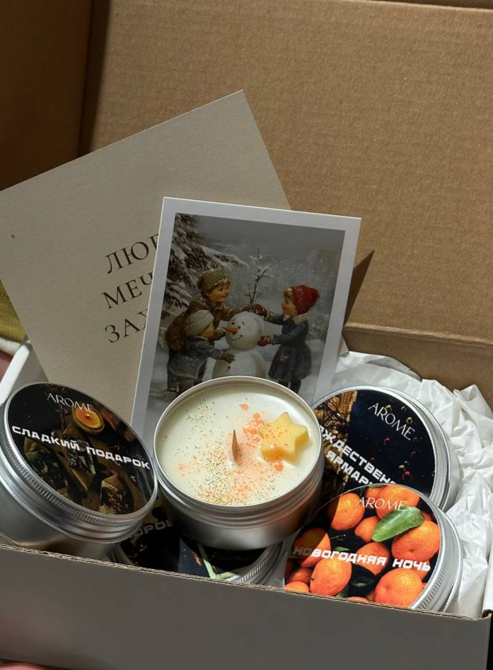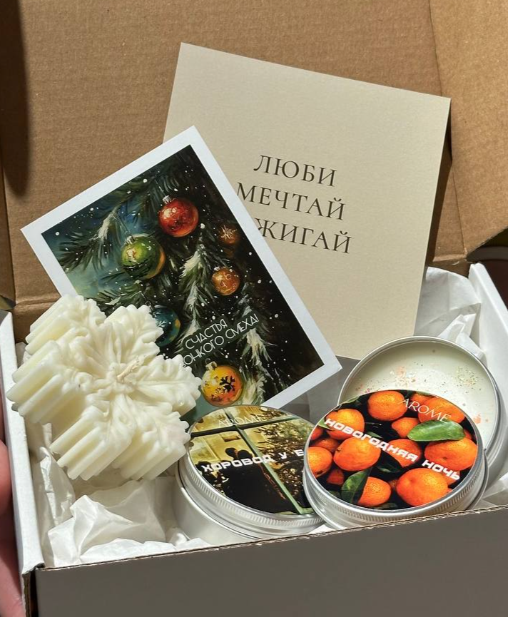 состав набора свеча снеговик диффузор для дома свеча малышкиа открытка
