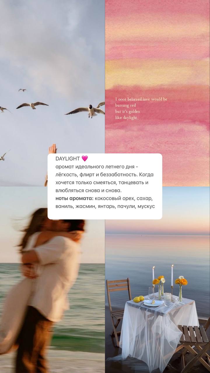 парфюмерная вода 5мл - 990₽ 18мл - 2490₽ 30мл - 2890₽ стойкость - 6 часов | яркое звучание и шлейф тип аромата: сладкий аромат идеального летнего дня - лёгкость, флирт и беззаботность. Когда хочется только смеяться, танцевать и влюбляться снова и снова. тёплый, игривый, сияющий. ноты аромата: кокосовый орех, сахар, ваниль, жасмин, янтарь, пачули, мускус