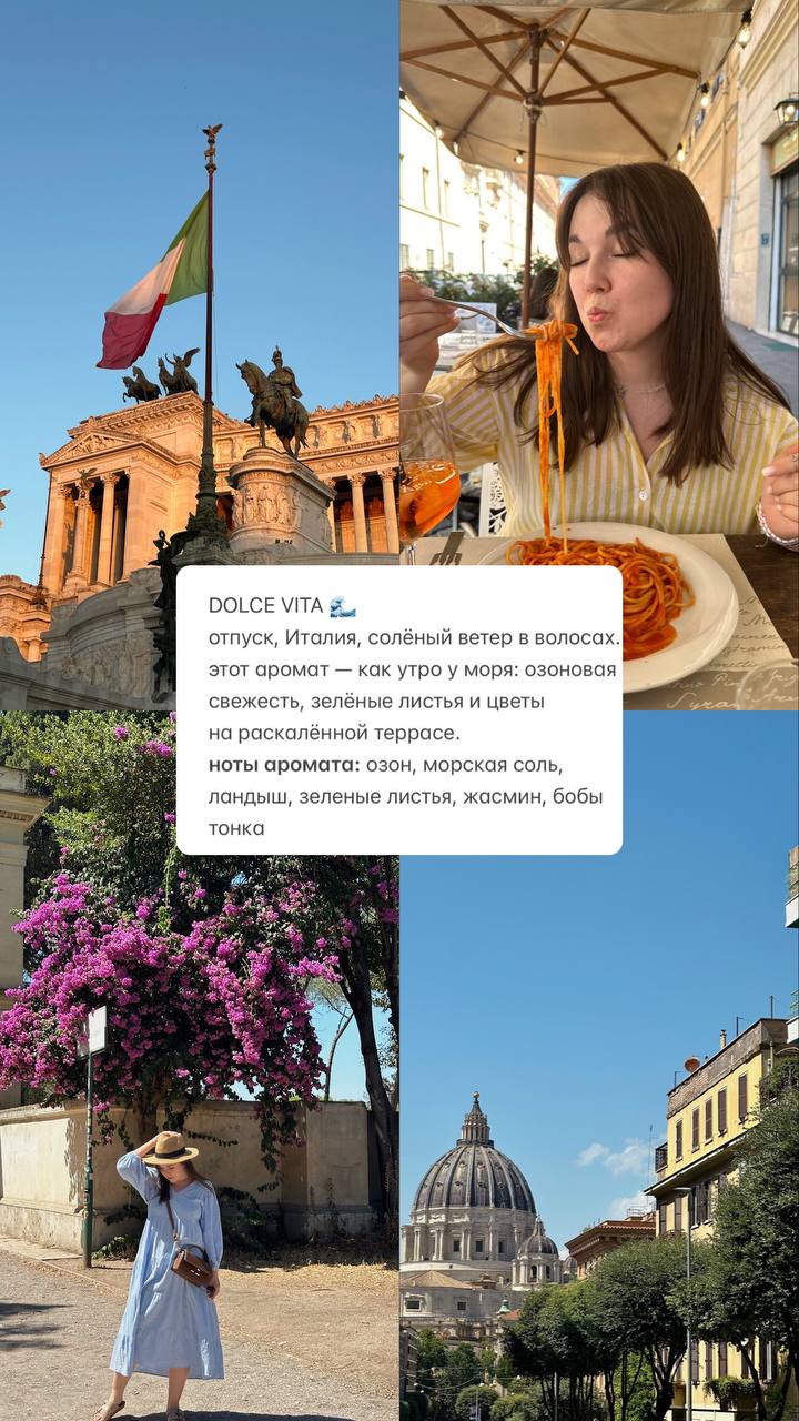 парфюмерная вода 5мл - 990₽ 18мл - 2490₽ 30мл - 2890₽ стойкость - 6 часов | яркое звучание и шлейф тип аромата: свежий отпуск, Италия, солёный ветер в волосах. этот аромат — как утро у моря: озоновая свежесть, зелёные листья и цветы на раскалённой террасе. Легкость, беззаботность и свобода. ноты аромата: озон, морская соль, ландыш, зеленые листья, жасмин, бобы тонка